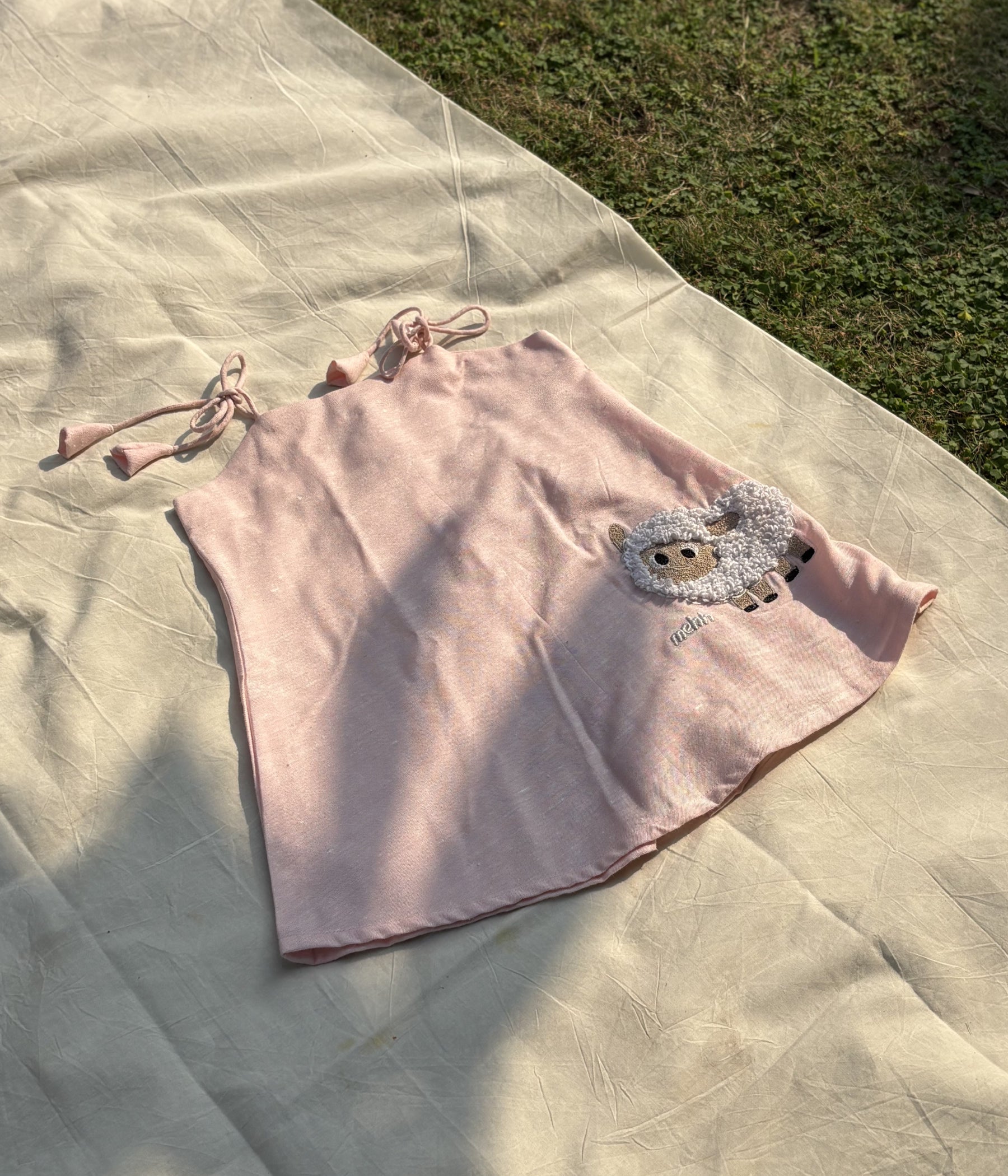 ● Front Detail: Handcrafted sheep motif with thread work